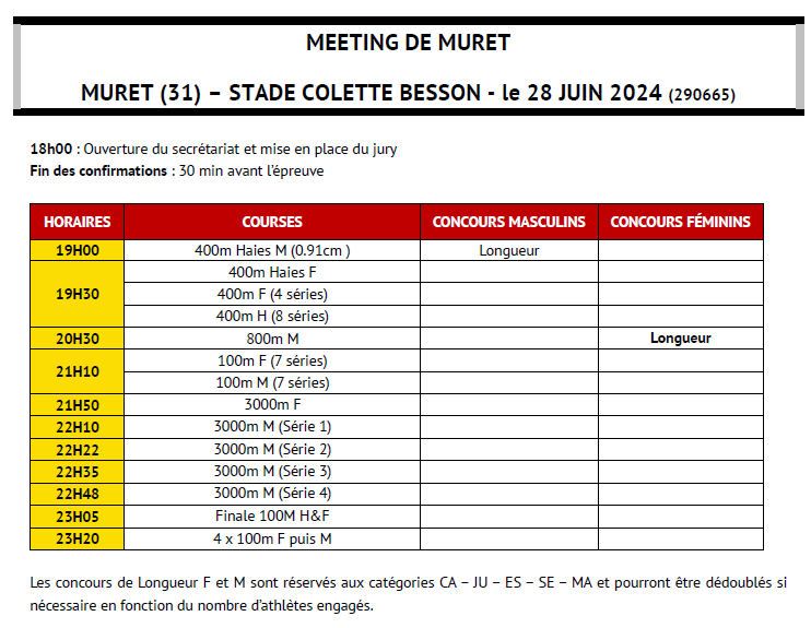 Merci de prendre en compte ce changement et de passer l’information au plus grand nombre (athlètes, entraineurs, clubs, parents…).