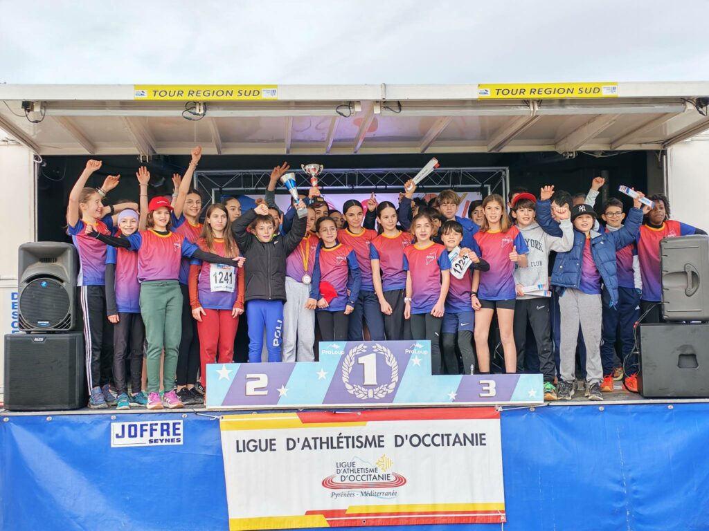 L’équipe d’Ales Cevennes Athlétisme sacré champion d’Occitanie avec 18pts au total.